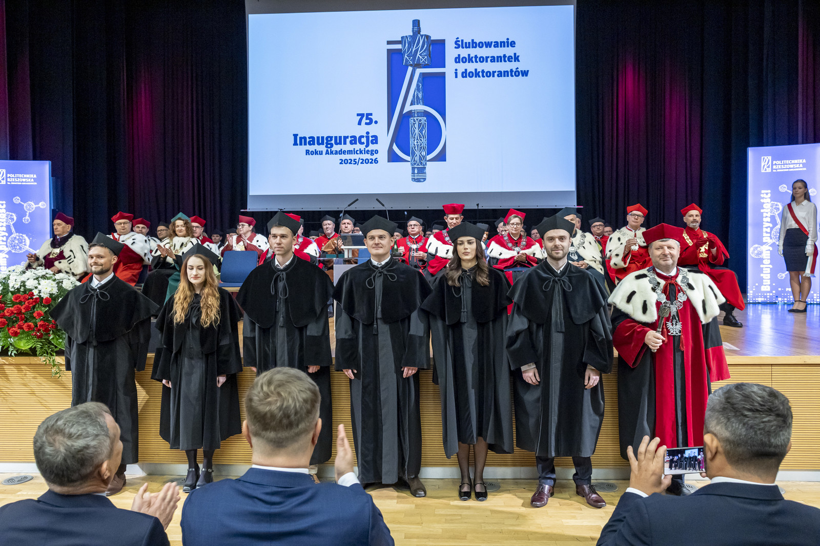 Ważną częścią uroczystości było ślubowanie przedstawicieli studentek i studentów pierwszego roku, które poprowadziła prorektor ds. kształcenia dr hab. Iwona Włoch, prof. PRz, oraz przedstawicieli doktorantek i doktorantów Szkoły Doktorskiej Politechniki Rzeszowskiej, które poprowadził prorektor ds. nauki dr hab. inż. Lesław Gniewek, prof. PRz. JM Rektor dokonał pasowania studentek i studentów oraz doktorantek i doktorantów.