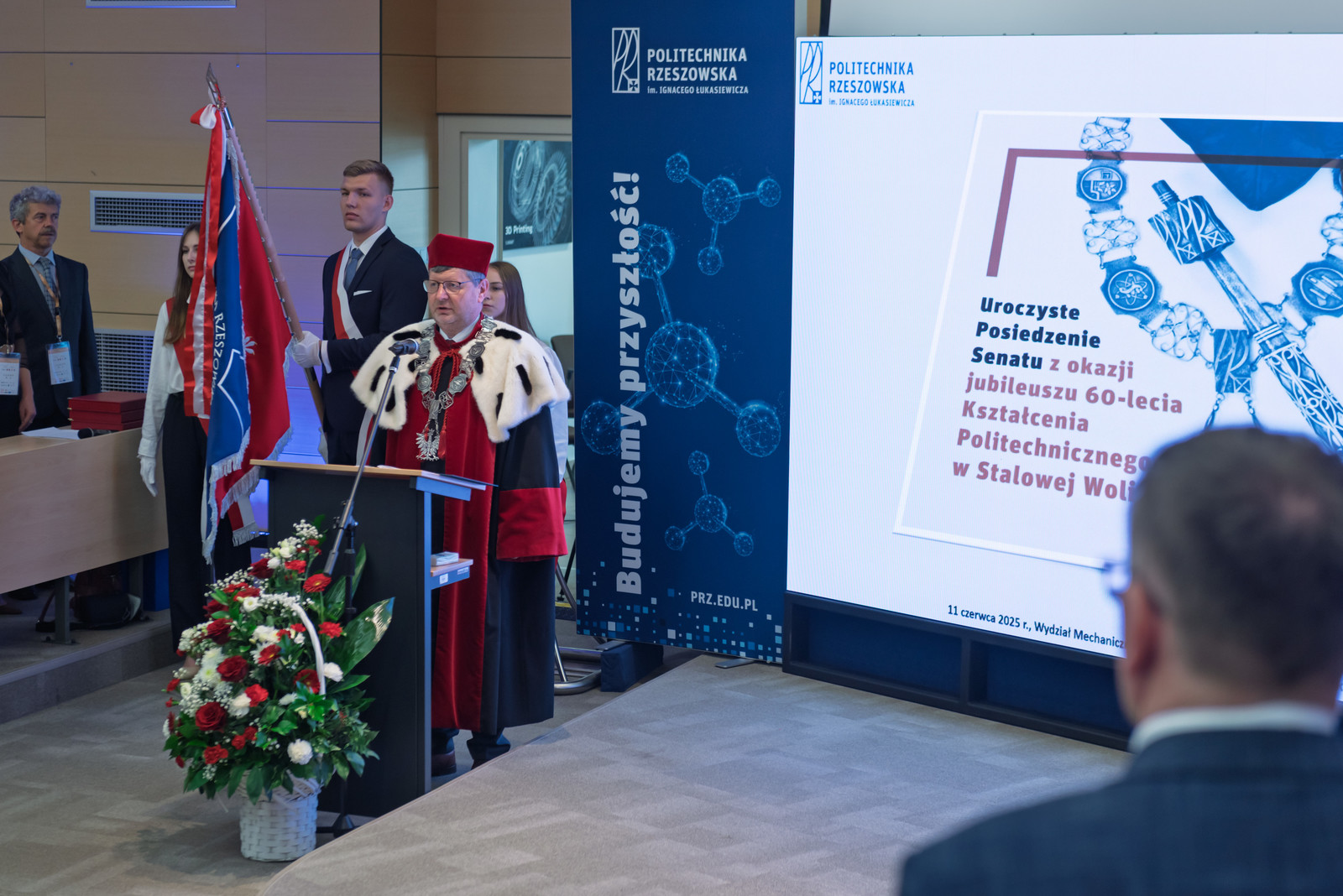 „Politechnika Rzeszowska to jedna z czołowych uczelni technicznych w Polsce. Odgrywa znaczącą rolę w rozwoju edukacji technicznej i naukowej w regionie Podkarpacia. Jej obecność w Stalowej Woli, trwająca już 60 lat, to okres dynamicznego rozwoju, wielu innowacji i przede wszystkim znakomitej współpracy z władzami miasta, powiatu i lokalnym przemysłem” – powiedział rektor prof. Piotr Koszelnik, rozpoczynając uroczyste posiedzenie Senatu Politechniki Rzeszowskiej.