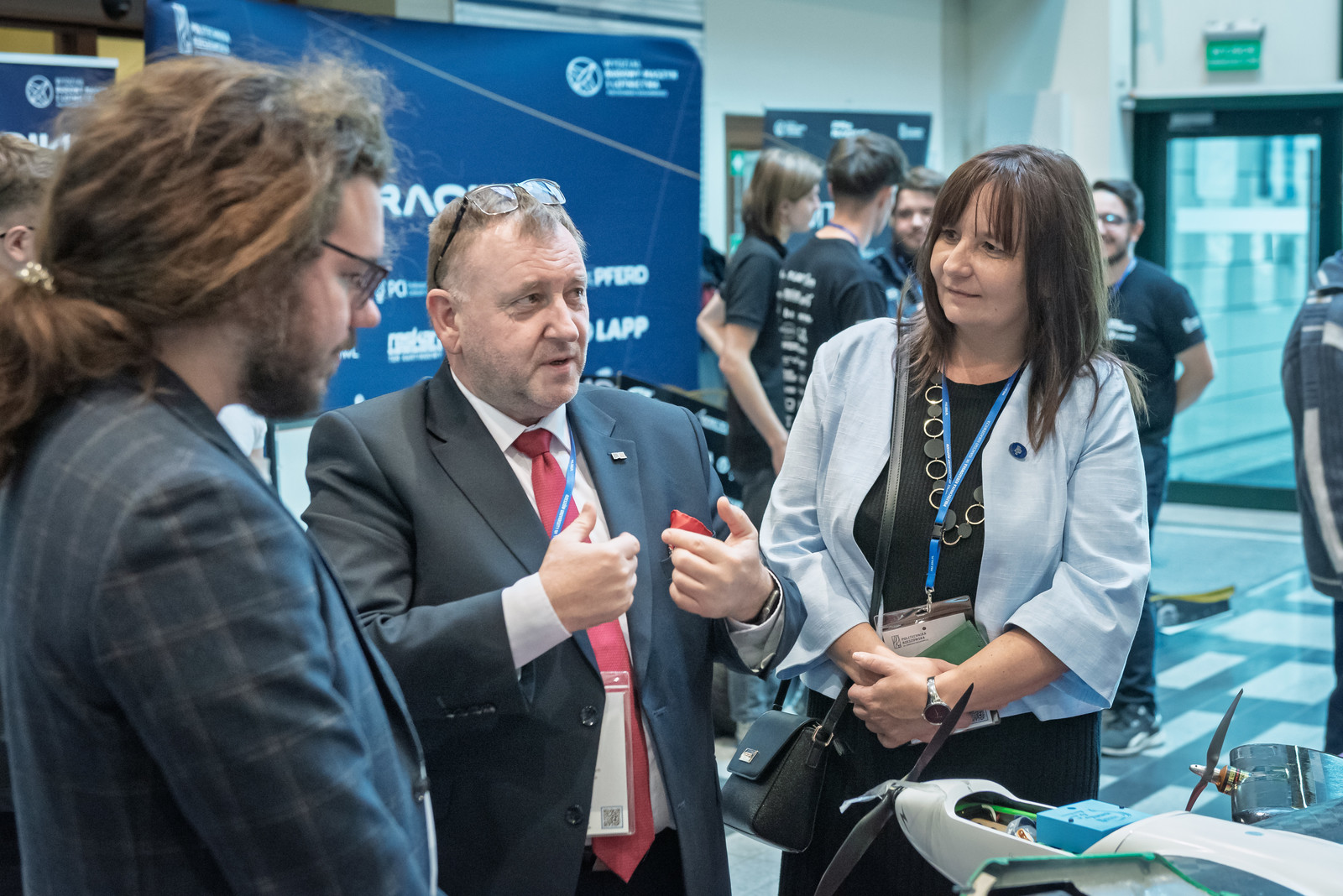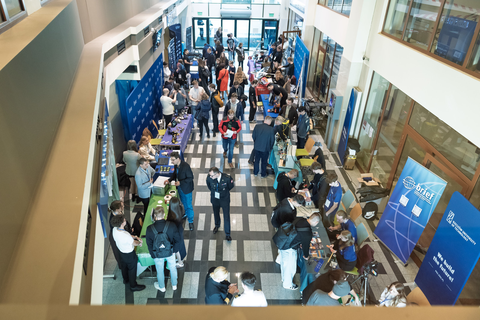 Ważnym punktem konferencji było spotkanie prorektorów z rektorem Politechniki Rzeszowskiej, prof. dr. hab. inż. Piotrem Koszelnikiem, które odbyło się w Sali Senatu PRz. Rektor przedstawił uczestnikom historię, strukturę oraz potencjał naukowy i dydaktyczny naszej uczelni. Zainteresowaniem cieszyło się spotkanie z przedstawicielami Samorządu Studenckiego, studentami specjalności „pilotaż” oraz członkami kół naukowych. Swoje osiągnięcia w formie krótkich prezentacji przedstwili studenci działający w kołach naukowych EUROAVIA, Lotników, Formuła Student i Machine Learning. Ponadto na stoiskach w holu budynku V wystawiło się kilkanaście kół z różnych wydziałów uczelni. Całość tej części wizyty koordynował pełnomocnik rektora ds. kół naukowych dr inż. Bartosz Pawłowicz. Prorektorzy mieli okazję zapoznać się z osiągnięciami studentów, obejrzeć wystawy oraz odbyć bezpośrednie rozmowy pozwalające poznać szczegóły działalności kół naukowych. Równie interesującym punktem wizyty było zwiedzanie Centrum Informacyjno-Bibliotecznego, po którym oprowadzała dyrektor dr Monika Zub.
